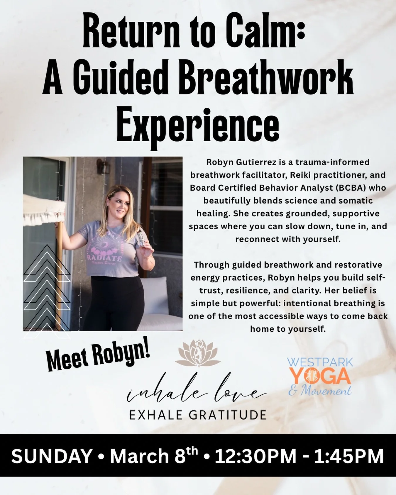 This 75-minute guided meditative breathwork workshop, you’ll be gently led through intentional breathing practices designed to calm the nervous system, release stored tension, and come into contact with inner peace.