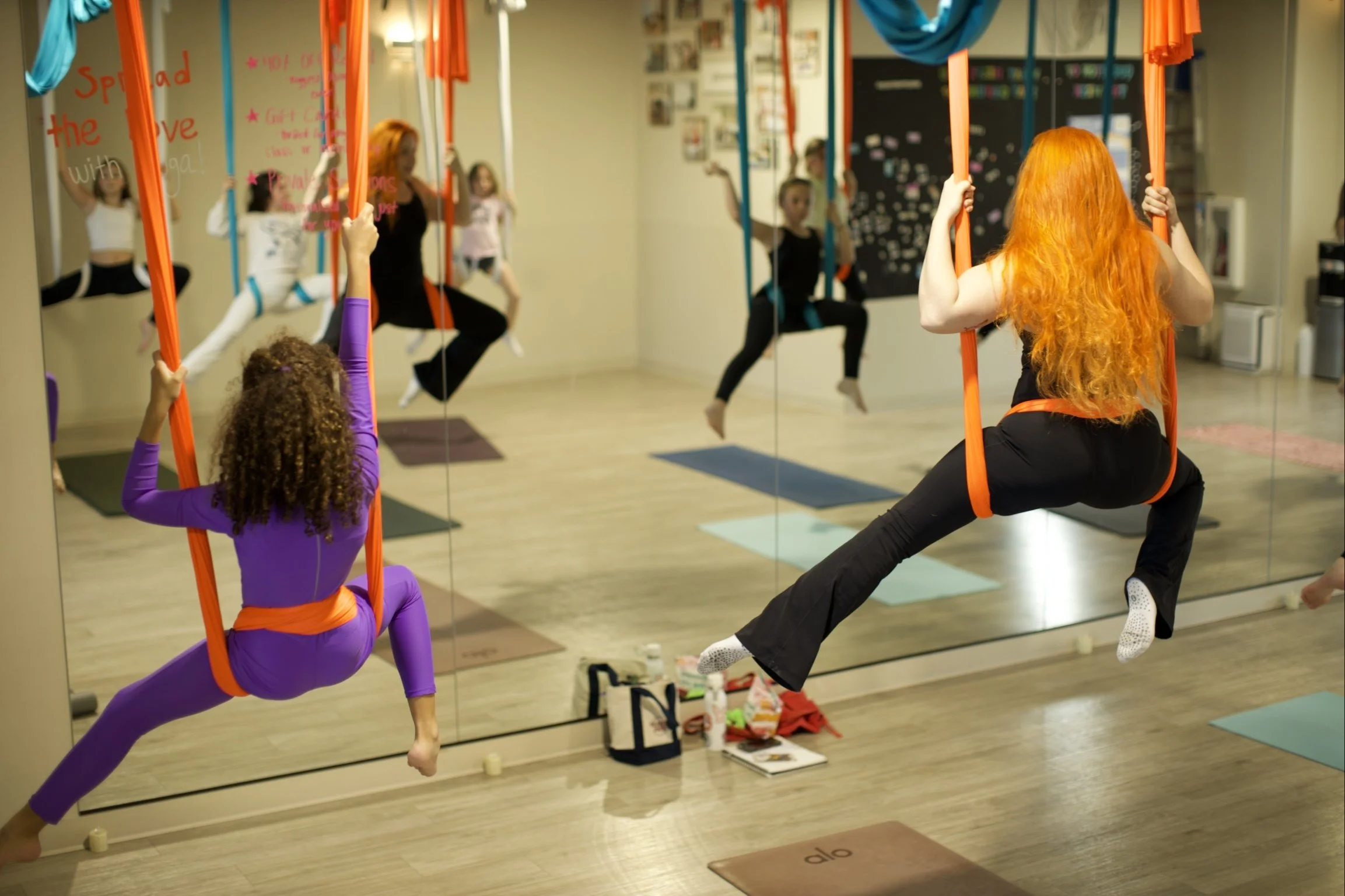 Our Kids Aerial Yoga Membership gives young yogis ages 7–12 the chance to explore the wonders of aerial yoga in a fun, safe, and supportive environment — improving flexibility, strength, coordination, and confidence.